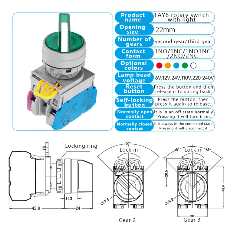 Yüksek Kaliteli LAY6 Serisi Buton Anahtar - 250V 10A, Anlık/Kilitli Tip Otomatik Sıfırlama Kendinden Kilitlemeli Buton Tipi